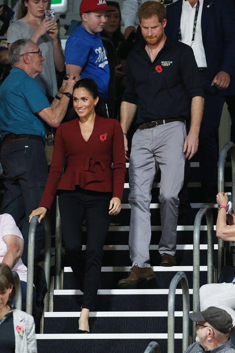 Harry, 34, wore a black Invictus Games polo shirt with gray slacks. As the royal couple made their way down the stands and into their seats, they were greeted by a very excited crowd. Then proceeded to sit with Prime Minister Scott Morrison and Defence Minister Christopher Pyne.
