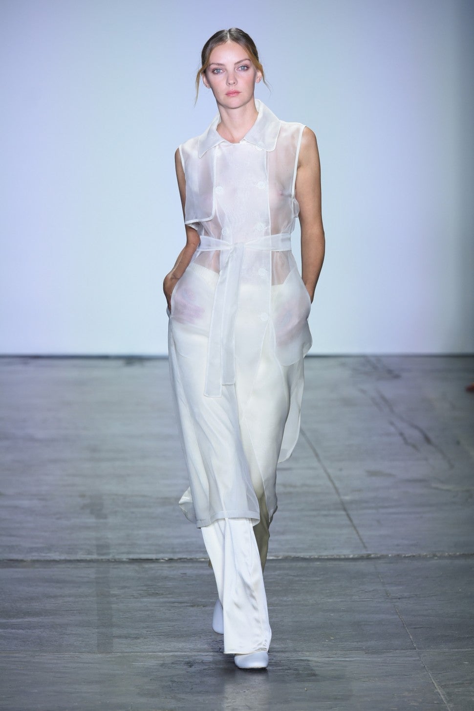 Lo and behold, a gorgeous, frothy organza version in white walked down the runway, which we're totally bookmarking for our shopping list next spring.