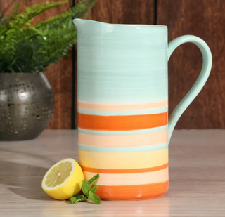 Serve up your favorite cocktails and summer sippers in style with a striped stoneware pitcher.