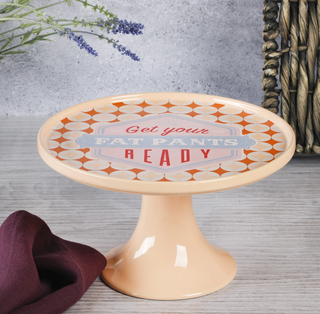 "Get your fat pants ready" reads this cheeky porcelain cake stand.