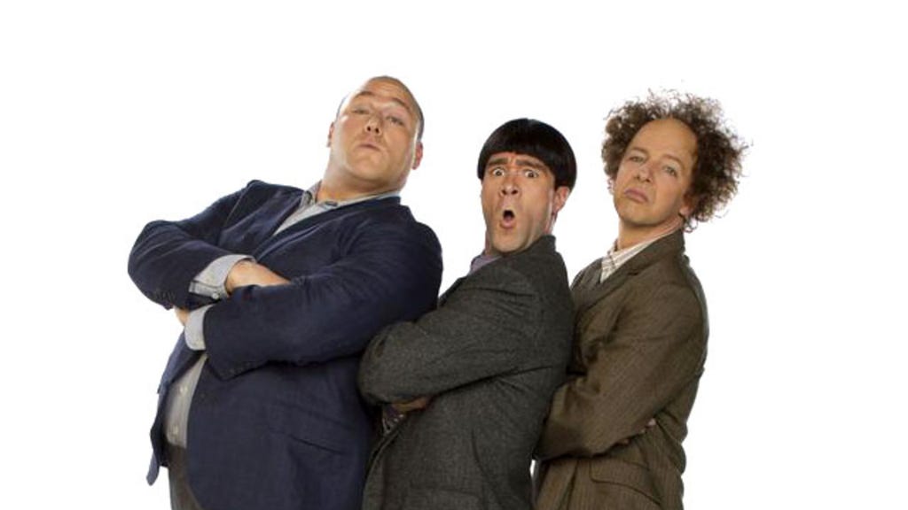 An official photo of the new Three Stooges, starring Will Sasso as Curly, Sean Hayes as Larry and Chris Diamantopoulos as Moe, has just been released.