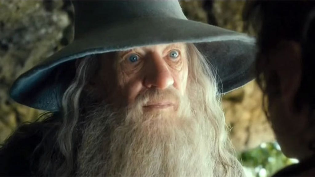 The clip shows the pivotal moment in which Gandalf the Wizard (reprised by Sir Ian McKellen) gifts Bilbo with Sting, a very special sword.