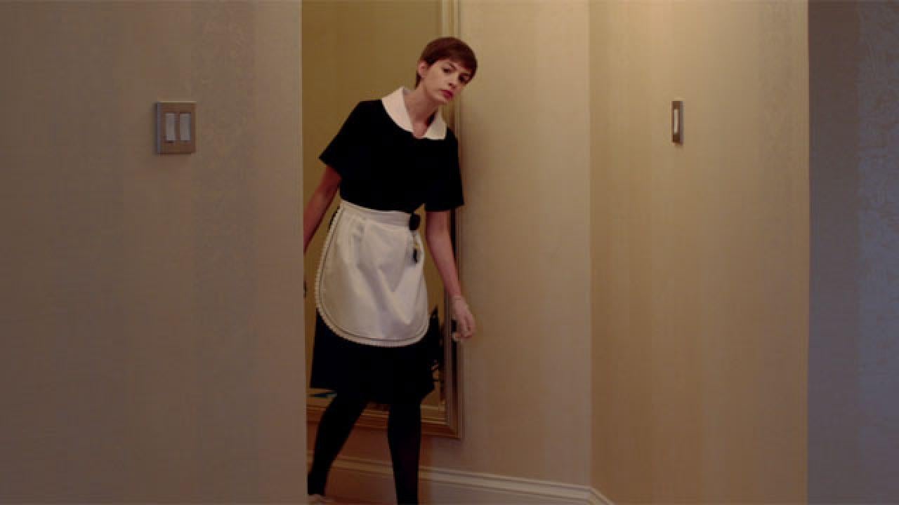 For Les Miserables star Hathaway, who is a frontrunner for Best Supporting Actress, she plays a hotel maid who finds one guest's wardrobe too enticing to ignore.