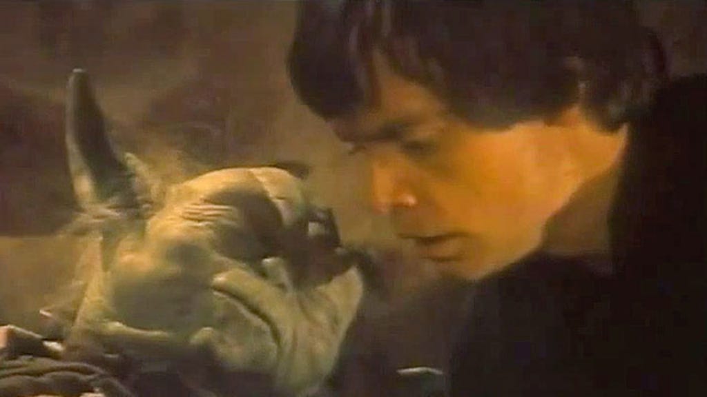 Update: A Facebook user has posted new LaserDisc footage featuring seven solid minutes of sad and dying Yoda scene work from Return of the Jedi. It kicks in after about a minute of total silence.