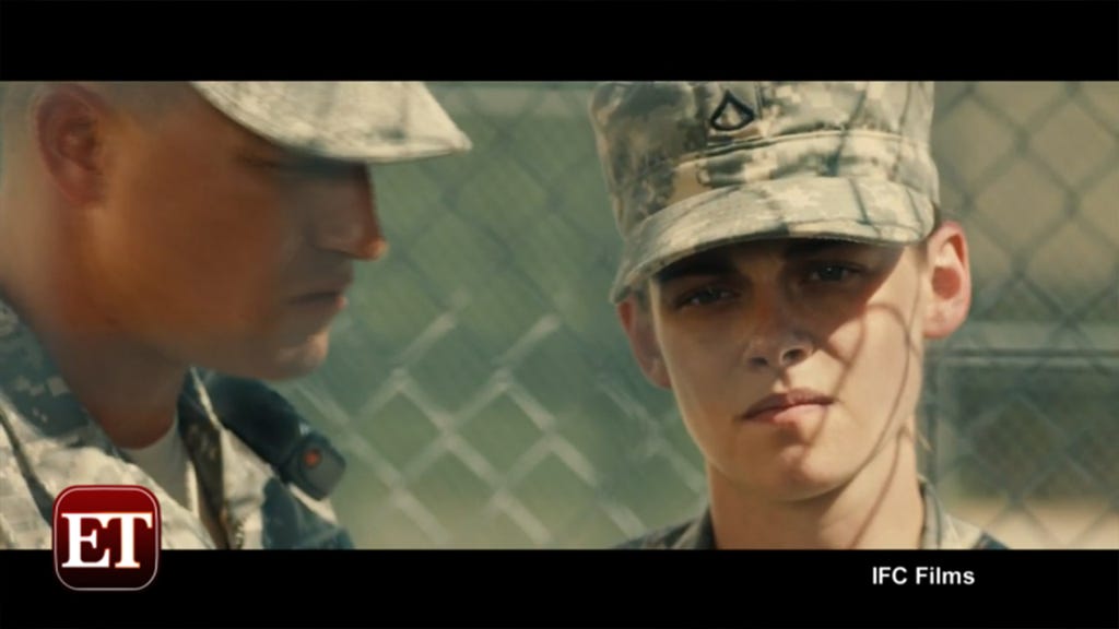 Not surprising given the subject matter, Stewart appears more intense than ever in her role as Private Amy Cole, donning camouflage gear and minimal makeup.