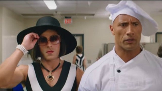 But the best Efron moment comes as the former High School Musical star dresses up as a woman, wearing a low-cut, black-and-white dress, yellow heels and a hat. And yes, he still manages to look hot!