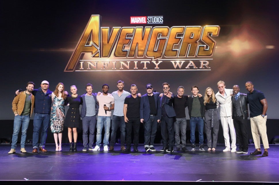 Mark Ruffalo (Bruce Banner) and his "friend from work" Chris Hemsworth (Thor) arrived, at which point Feige teased, "I guess it's worth bringing out the man who started it all." At which point Robert Downey Jr. (Iron Man) took the stage, along with one half of the Russo Brothers, who are directing Infinity War.