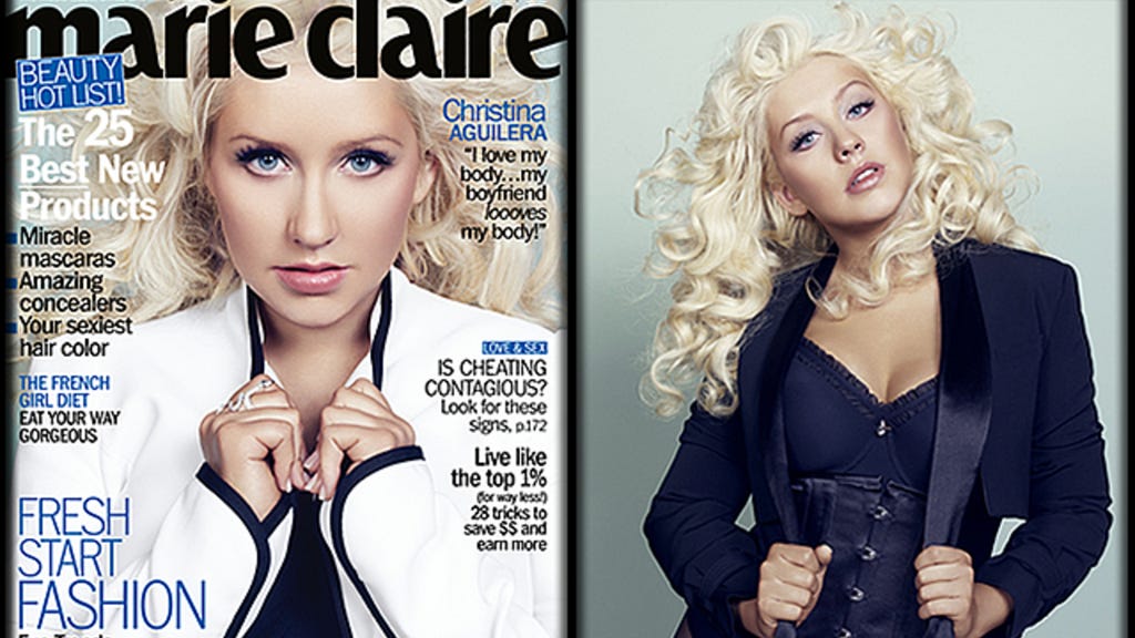 Aguilera appears in great shape wearing a revealing blue outfit on the cover of the February issue of Marie Claire, hitting newsstands January 17th. While she's been criticized in the tabloids for her fluctuating weight and wardrobe choices and admits she's been through her highs and lows, she claims that she's now completely at peace with her figure.