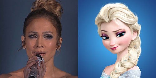 The only thing as shiny as J. Lo's mic is her awesome glitter make-up!