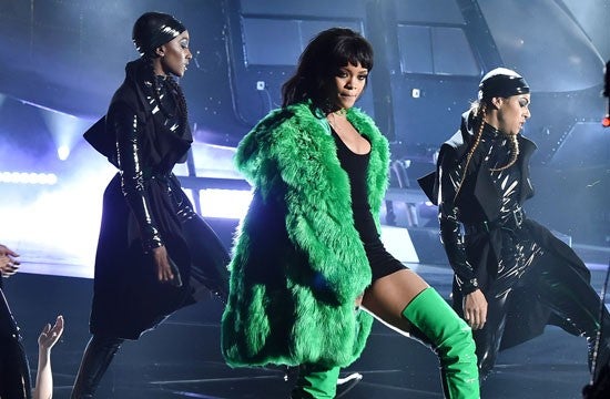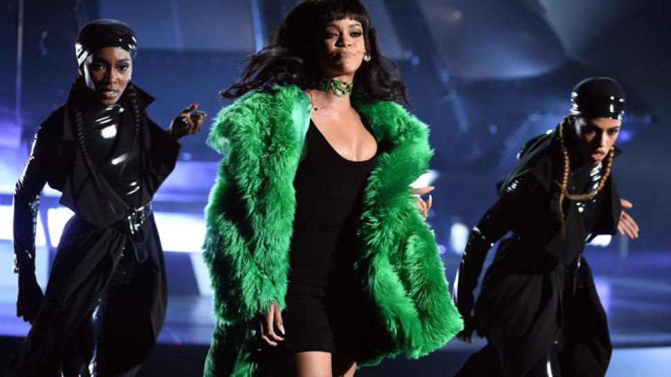 Backed by a group of leather-clad dancers, it looked like Rihanna meant business, or like she was about to fight Batman. She certainly had a super-villain vibe going on during the whole number.