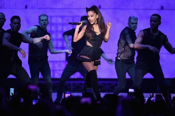 Unlike many female artists with backup female dancers, Grande's male-to-female dancer ratio was about seven guys to three girls. At any given time, she had a group of attractive men dancing behind her or holding her up. (Not a bad gig.)