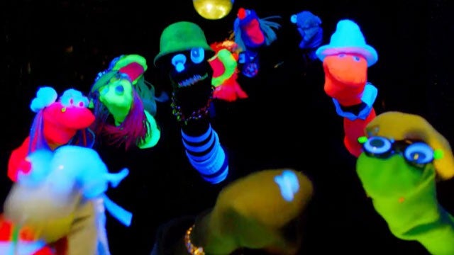 A gaggle of glow-in-the-dark sock puppets were also invited to the bash.