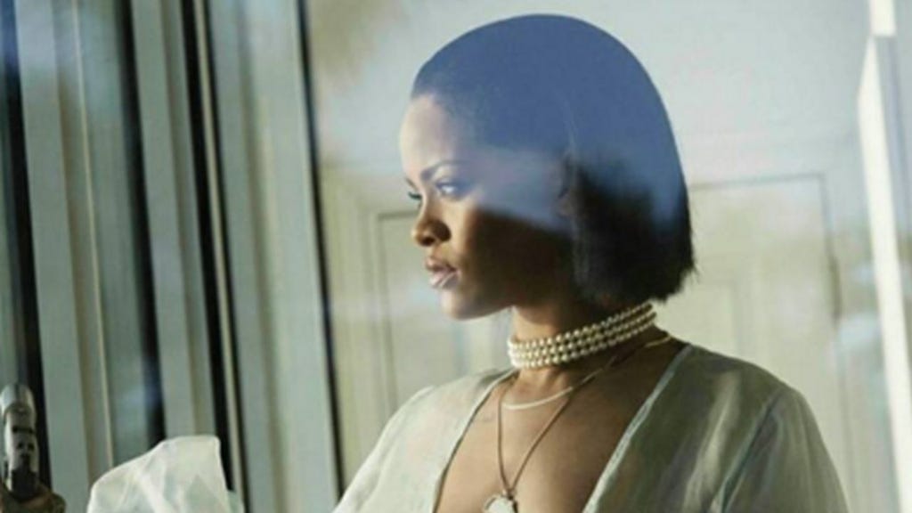 In the NSFW video, Rihanna appears topless, baring all in a sheer wrap dress and white thong. Her look is completed with a pearl choker, gold African necklace and slicked back hair. But her most badass accessory of all is the gun she carries throughout the explicit clip.