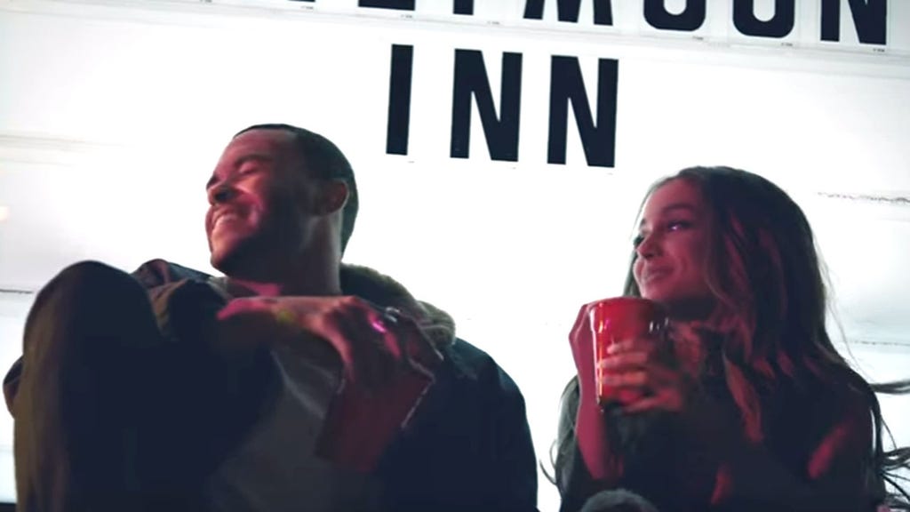 Benjamin plays Grande's bodyguard, who is having a secret affair with her while the public thinks she's with another celebrity. Reminiscent of Rihanna's "We Found Love" music video, the two speed off on a motorcycle for a rendezvous at a seedy motel.