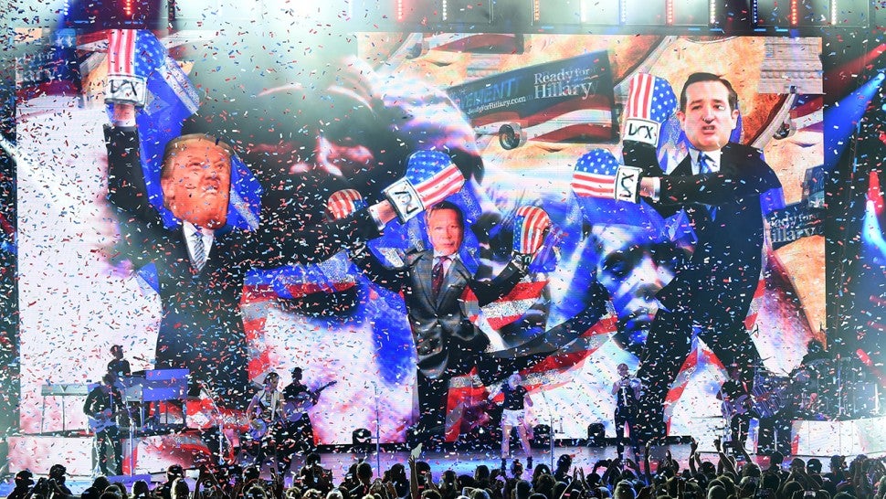 Who's Maines voting for during the November election? Who knows? In fact, that was the point of "Ready to Run" -- to keep you guessing. The song took an equivocal approach to politics, flashing the crazed faces of Hillary Clinton, Trump, Elizabeth Warren, Ted Cruz during a circus motif as they performed the raucous sing-along in front of both Democrats and Republicans, portraying them as bobbleheads.
