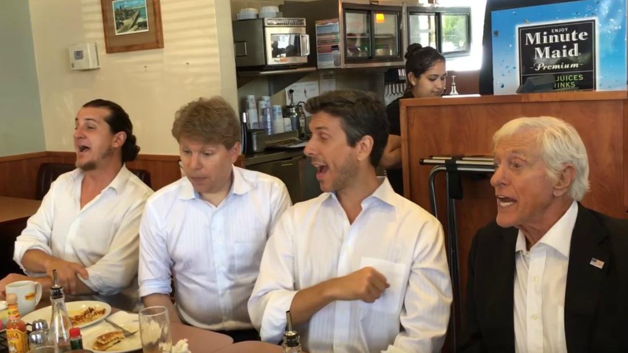 The Dick Van Dyke show star delighted patrons at a Denny's in Santa Monica, California, recently by breaking out into a barbershop quartet rendition of "Chitty Chitty Bang Bang."