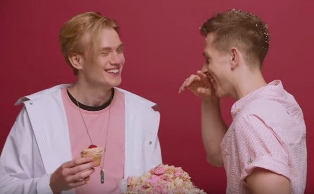 Directed by Charli herself and Sarah McColgan, the video is a pastel-pink dreamscape of boys of all flavors showing off for the camera, from Joe Jonas eating pancakes to Khalid cuddling neon-painted puppies to a soaking-wet Tom Daley, and back again.
