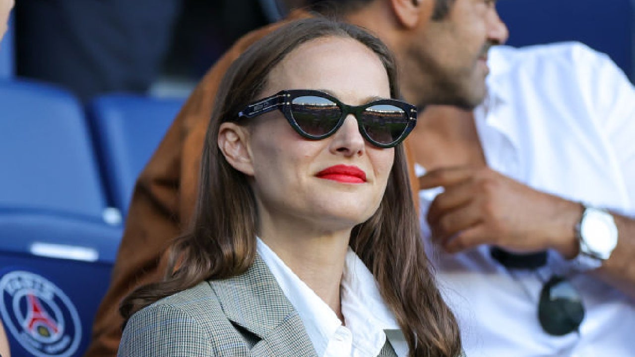 Portman, who was in attendance at Parc des Princes Saturday to see PSG take on Clermont Foot 63, rocked a plaid blazer over a white shirt and blue jeans. The Thor: Love and Thunder actress accessorized the look with a bold, red lip and a pair of cat-eye sunglasses.