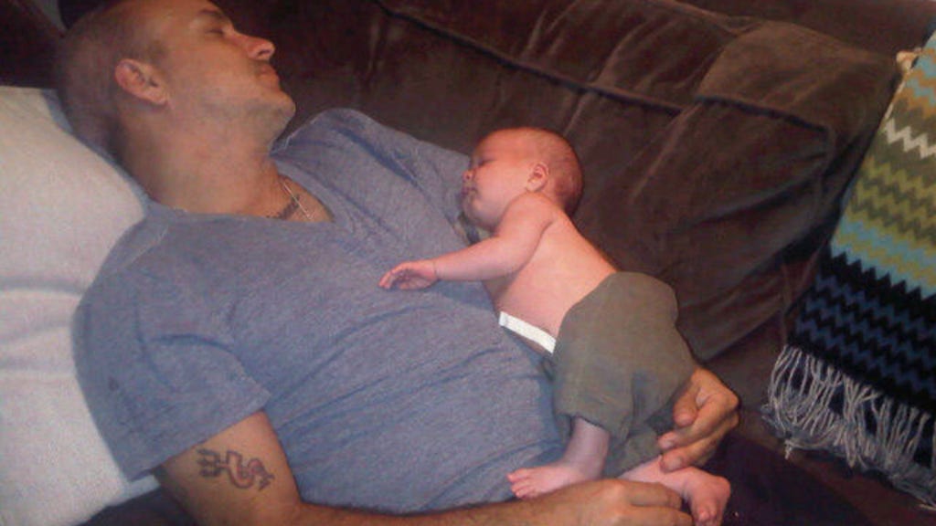 Blair tweeted the pic of her round-cheeked baby sleeping on the chest of his father, fashion designer Jason Bleick, writing, "My boys."