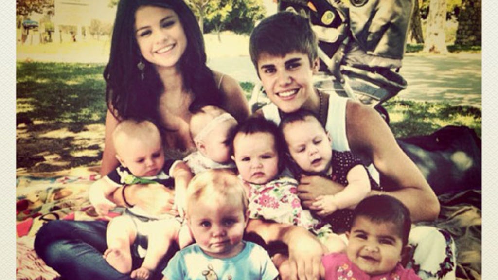 Ever wonder what Justin Bieber and Selena Gomez would look like as parents? The Biebs is out to satisfy your curiosity.
