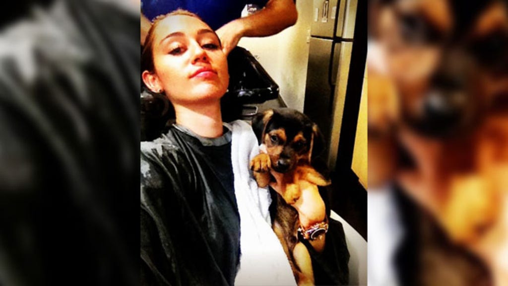 Though the puppy's new owner isn't sure of its breed, judging by its characteristics, Miley suspects it might be a Rottweiler-beagle mix. Happy will have plenty of canine company at the Cyrus residence, as Miley already has three other dogs: Lila, Floyd and Ziggy.