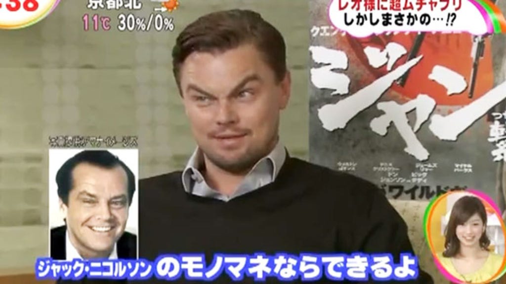 "I do these Jack Nicholson eyebrows," a cheerful DiCaprio confessed when asked in Japan if he did any impressions (about 2:22 minutes into interview).