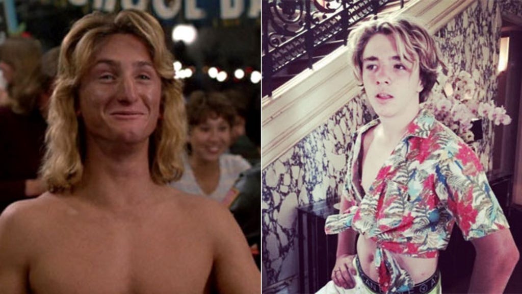 The 14-year-old donned digs similar to that of Penn's character in the 1982 coming-of-age flick Fast Times at Ridgemont High, and the Material Girl had to Instagram the silly moment. Madonna posted on Tuesday: "Jeff Spicoli is alive and well in the South of France! #boom #fuzzy."