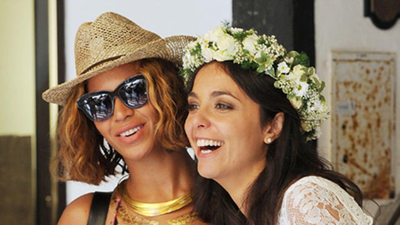 And despite being underdressed for the occasion in a pink floral bikini, a nude sarong skirt, black shades and a straw hat, Queen Bey still managed to look picture-perfect and obviously made the bride's day.