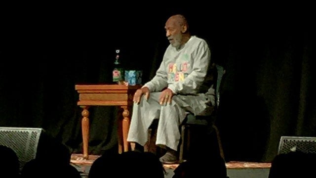 Seated on stage wearing a grey sweatshirt with the message "Hello Friend" written across it, the 77-year-old Cosby Show star never mentioned the sexual abuse claims making headlines in his 90-minute set.