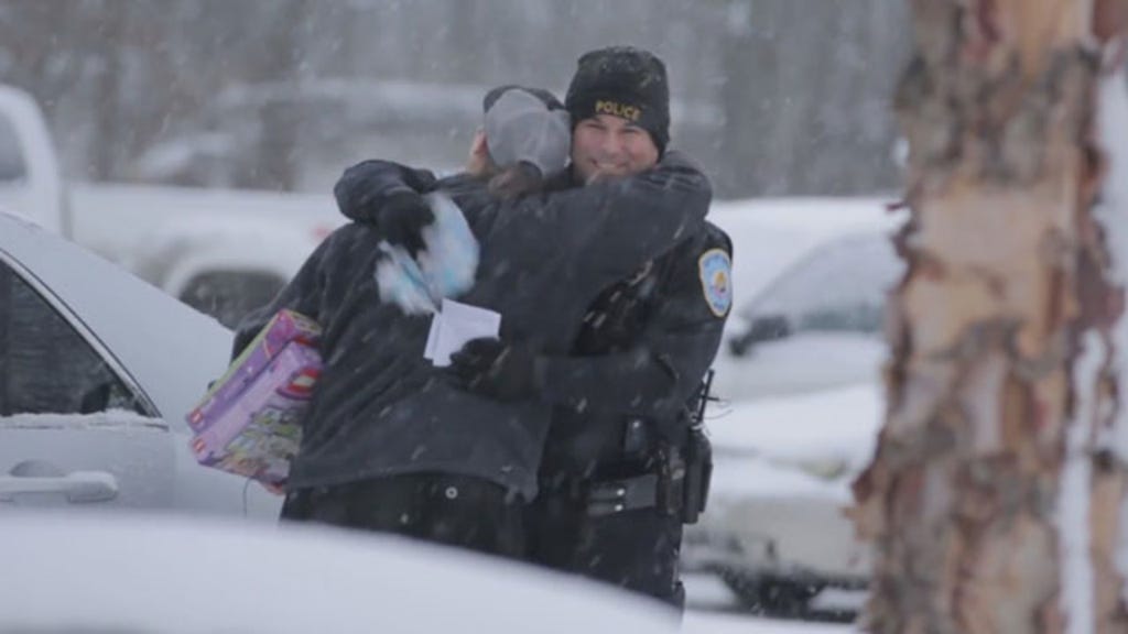 The officer then makes this driver's whole day better with wrapped gifts to give to her daughter.