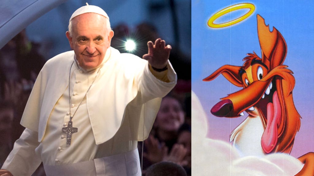 That is the latest BREAKING NEWS coming out of the Vatican. Yes, Cool Pope Pope Francis confirmed that All Dogs Go to Heaven is, in fact, a documentary. Not really, but this is a real headline on a real news outlet: