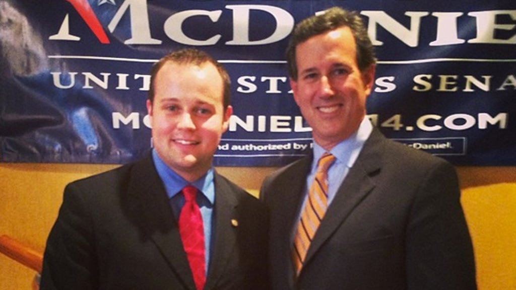 At 26, Josh Duggar is the clan’s eldest son. He opened his own used car dealership in 2006, and started working simultaneously as a political consultant the year after. In 2013, when he quietly began working in Washington, D.C., Duggar’s jump was actually to a very high-profile position—Executive Director of FRC Action, the political arm of the Family Research Council. FRC Action advocates for socially conservative legislation, including opposing LGBT non-discrimination laws, abortion and divorce. (He's pictured above, at left, with former presidential candidate and U.S. Senator Rick Santorum.)