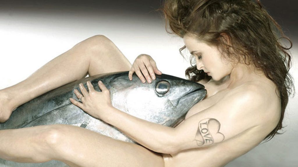 Helena said it was actress Greta Scacchi that talked her into doing the ads. "I'm actually very phobic about fish so when Greta asked me to be photographed naked with a 27kg tuna I was more worried about touching it than getting my kit off," Tim Burton's ex admitted (via Daily Mail).