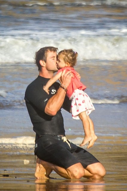 Hemsworth hit the beach for some sun, surf and father-daughter time, and if you didn't think he deserved the title of People's Sexiest Man Alive before, these adorable pics may change your mind.