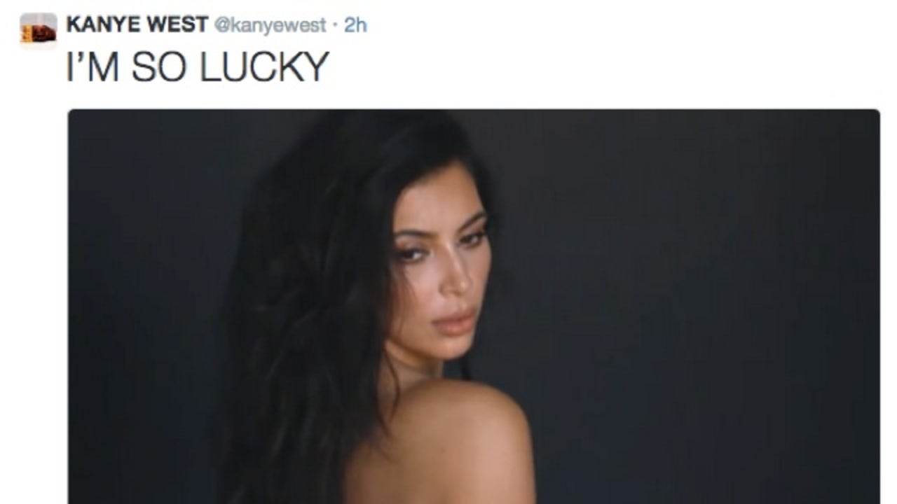 The rapper tweeted out 8 semi-NSFW photos of his wife Kim Kardashian to congratulate her on the new season of Keeping Up With The Kardashians, and also just to show appreciation apparently!