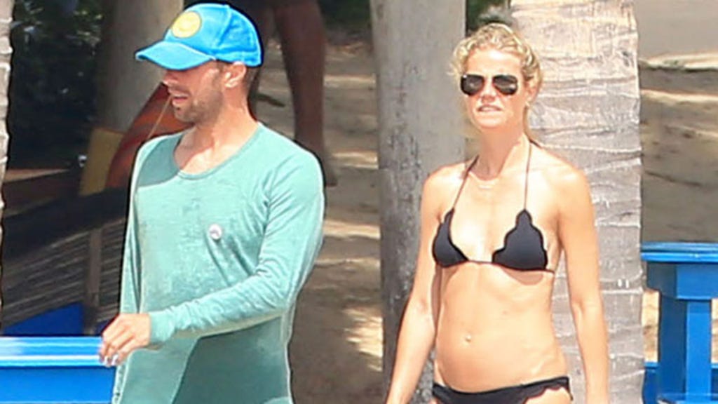 Gwyneth Paltrow, 42, and her estranged husband Chris Martin, 38, were the model ex-couple on the beach in Puerto Vallarta, Mexico this week. Gwyneth was snapped looking svelte in a skimpy black bikini while the Coldplay frontman hid his skin from the sun in a hat and long-sleeved shirt.