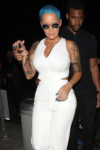 We wonder if Amber's ex, 27-year-old Wiz Khalifa, is a fan of her bold new look -- the formerly estranged couple spent Easter together, Amber rocking her new blue hair, with their two-year-old son Sebastian at Tamar Braxton's party in Calabasas, Calif. Last week, Amber surprisingly called the "Roll Up" rapper the love of her life in an Instagram pic of the two kissing, despite all of their former drama.