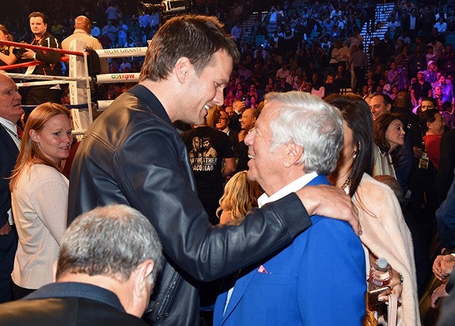 And just a few short hours later, another photographer caught the frequent flier cozying up with Patriots owner Robert Kraft at the ring: