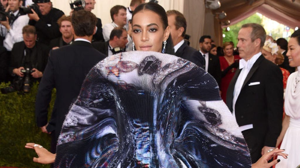 Solange is attending the 2015 Met Gala wearing some creation of Giles that is not a dress.
