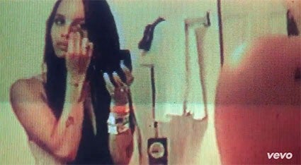 The video opens with grainy footage of Kravitz (daughter of Lenny Kravitz and Lisa Bonet, and one of the stars of the upcoming Mad Max: Fury Road) waking up and getting dressed.