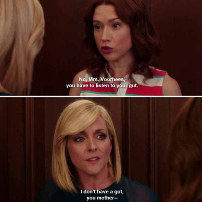 Despite being a scheming politician, Dawn took Jessica under her wing -- to teach the doe-eyed elementary school vice principal how to manipulate people, but still. While dishing out these life lessons during a golf outing, Dawn explains, "I never wear underwear in networking scenarios. It gives you a secret, an edge. Besides I firmly believe that power emanates from the vagina. So why block it?"