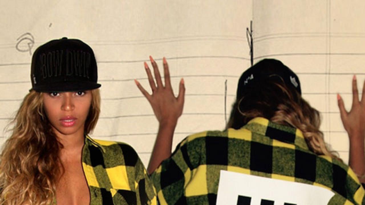 One in particular had Bey wearing a loose-fitted (gasp!), yellow and plaid shirt with exclamation points printed on the back. Making the look a LOT sexier, Beyonce posed with the shirt completely unbuttoned, revealing that she wasn't wearing a bra.