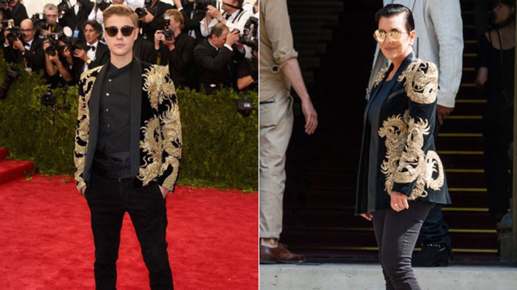 After Justin Bieber showed up to the 2015 Met Gala in May wearing his Balmain dragon blazer, the Jenner women have stolen the look.