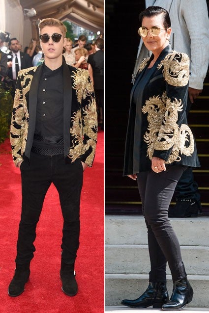 Then this weekend, her mother Kris Jenner was seen wearing a nearly identical outfit to that of the "Baby" singer, right down to the sunglasses and black pants. The 59-year-old momager appropriately wore the blazer to the Balmain show during Paris Fashion Week Menswear Spring/Summer 2016.