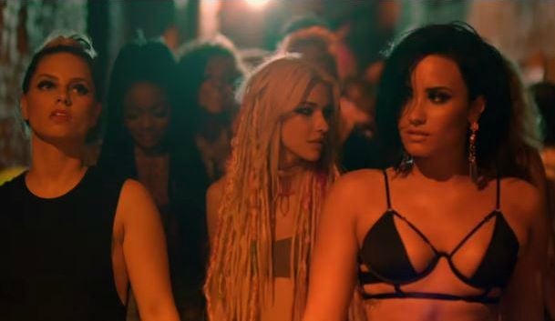 There's a lot going on here, too. For starters, Demi assembles a squad, that... while not quite at Taylor Swift's "Bad Blood" level, is venerable in its own right.