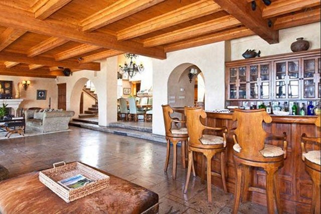 The owners shared many details of the space for potential renters, including its living room with a fireplace, large entertaining bar, indoor/outdoor spa jacuzzi, high ceilings and walls of French doors.