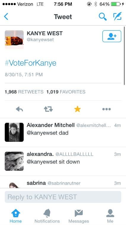 After the speech, Kanye tweeted (and then deleted) #VoteForKanye.