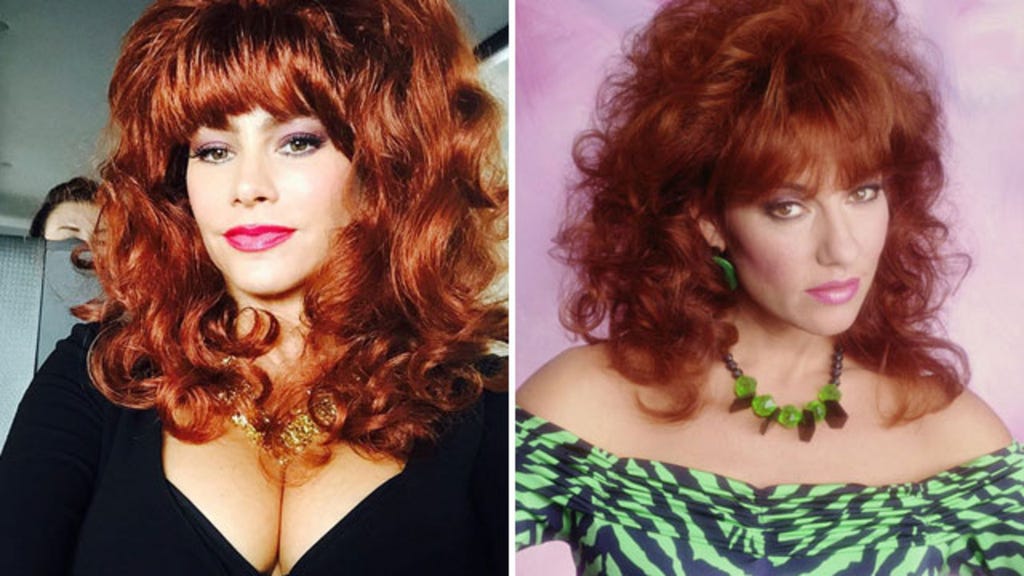The Modern Family vixen shared a hilarious photo on her Instagram sporting a sky-high, red wig. Paired with purple eyeshadow and some pretty pushed up (ahem…) assets, Vergara was the spitting image of Ed O'Neill's other TV wife.