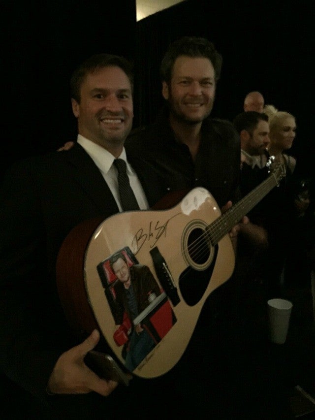 Lamannia said that Stefani was also impressed by the guitar, but stepped aside to allow Shelton to take a few photos with it. She can be seen in the background of Lamannia's photos.