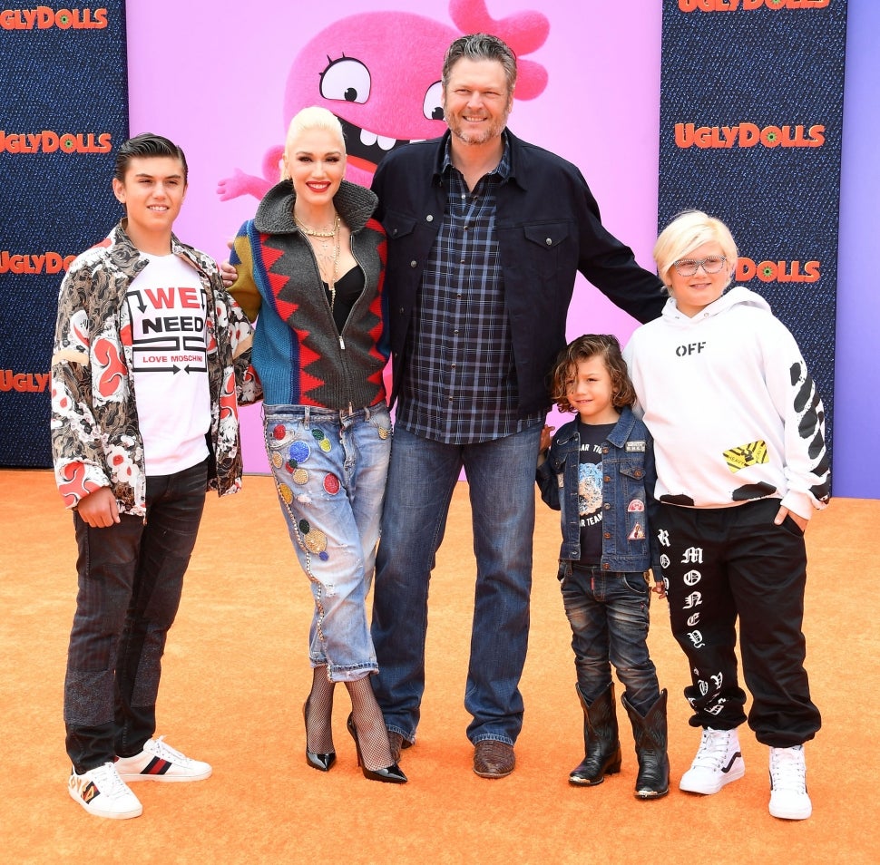 The pop singer attends the UglyDolls premiere at Regal Cinemas L.A. Live in Los Angeles with Shelton and her three sons.